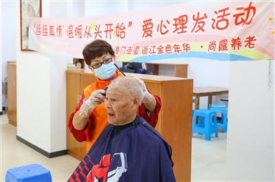 近日,海门街道太和社区联合浙江金色年华养老服务管理有限公司在社区党群服务中心开展了爱心义剪活动,附近居民纷纷来排队理发,理发师细心按照各人需求为大家理发,得到居民的一片称赞。